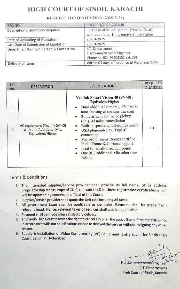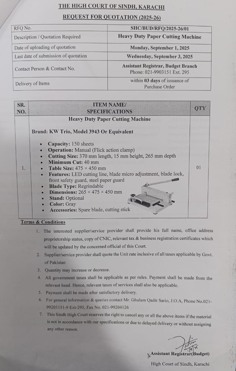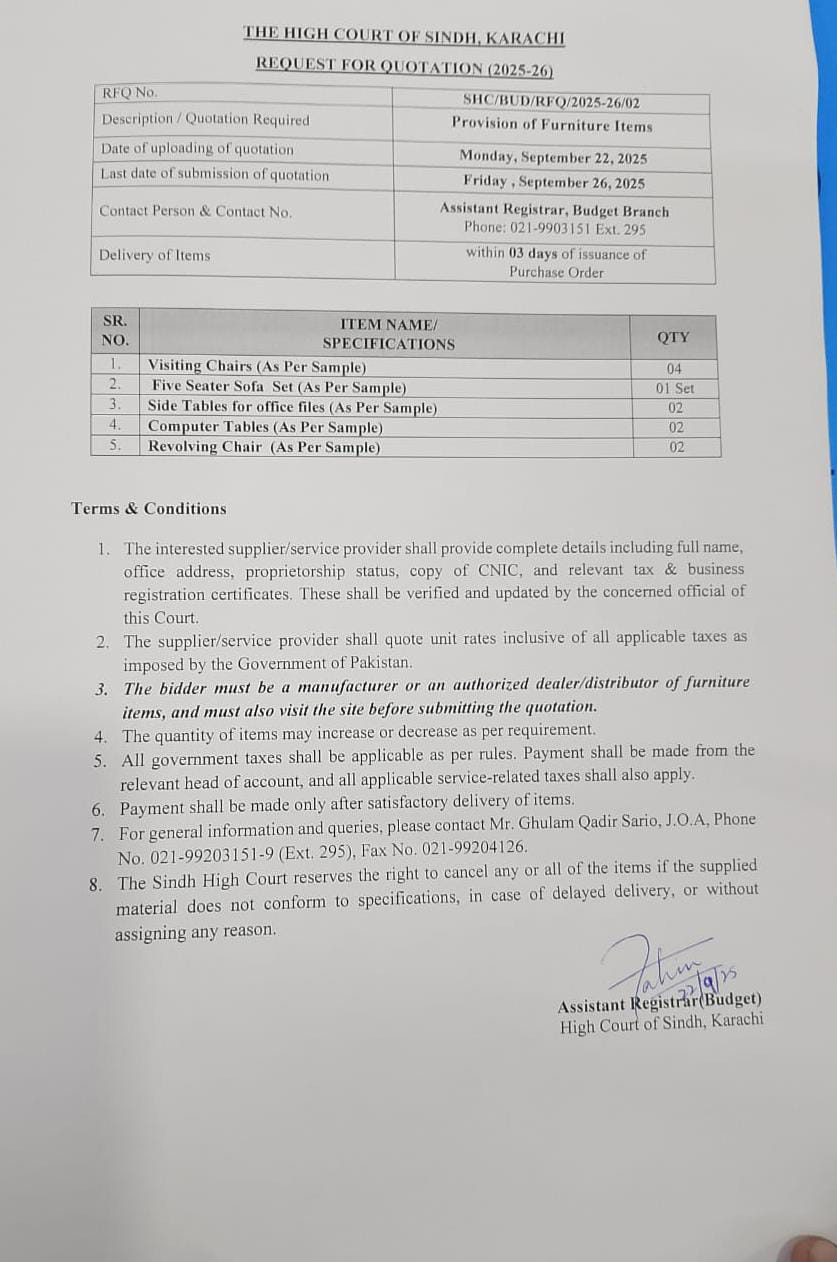 Quotation required (For Principal Seat Karachi)- uploaded on 16-04-2025 Quotation required (For Hyderabad)- uploaded on 16-04-2025 Quotation required (For Sukkur)- uploaded on 16-04-2025 |